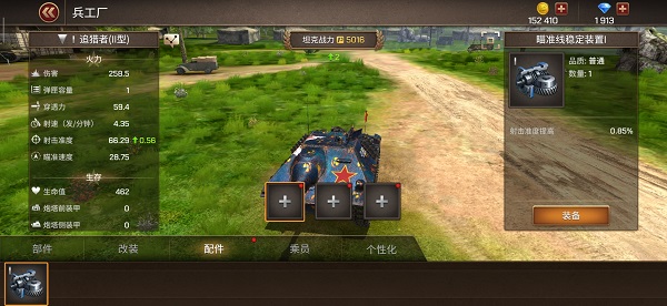 坦克争锋游戏中坦克可以装备3个不同的配件,配件可以提高坦克性能,每种配件的功能都不一样,玩家可以自由搭配,不同的搭配方式可以打造不一样的坦克风格。