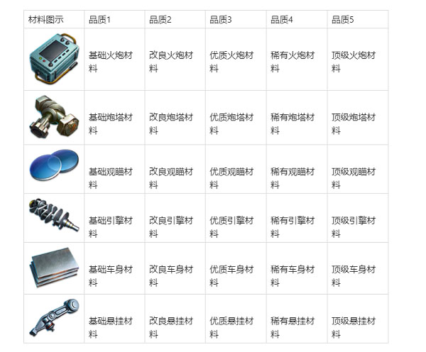 强化部件可以获得更强的坦克性能。强化需要消耗金币与对应部件材料,每级强化所需要的材料品质和数量会随着强化等级的提高而变化。坦克品质 不同,最高可强化等级也不同。