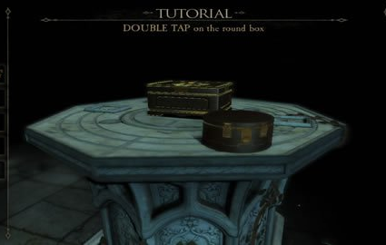 第一章结束后,我们看到了一个宝盒,围绕宝箱观察,似乎没有什么可以打开的地方,那就先用目镜观察一下宝箱,结果发现有一个边角有异样,用手点一下,得到了一本书。