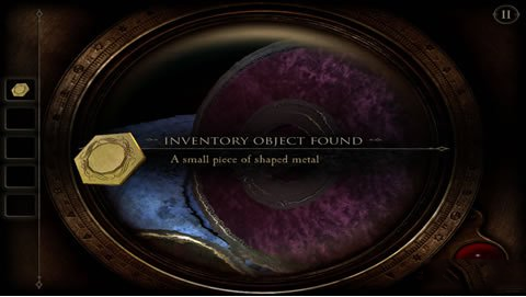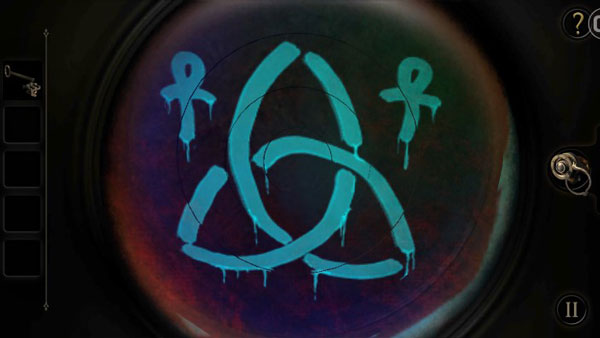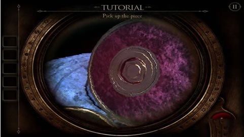 18、将扳手插入右下方的孔里,摇动扳手,圆形的片即将散开,这时候呈现出一个木板,用目镜观察得到一个图纹(类似拼图,跟第二章类似,这里无法给出图片,玩家稍微摸索下即可拼出图形)