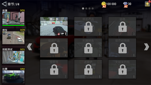 2、接着进入到赛车模式之后,中间就可以看到一个大大的赛车,往右切换画面可以解锁新赛车,点击赛车下面的开始图标进入游戏。