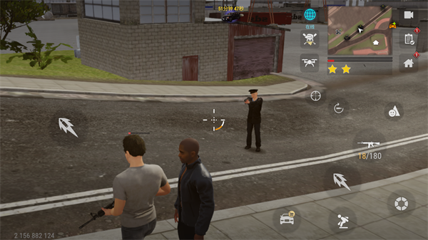 1、驾驶与战斗:左侧虚拟摇杆控制移动,右侧按键射击或投掷炸弹。车辆撞击可造成伤害,但耐久度归零会爆炸。初期建议通过“出租车工作”赚取第一桶金(接送顾客每次约$500),注意避免误伤乘客导致扣款。