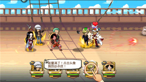 4、当敌人的血条已经很少是,我们点击角色头像,用必杀技即可轻松击败他们;