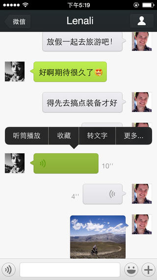 -可以发语音、文字消息、表情、图片、视频。30M流量可以收发上千条语音,省电省流量。