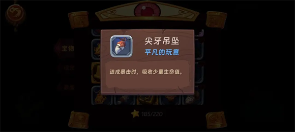 生命汲取,这是很不错且稀有的属性。 前期没有龋齿的时候可以使用小红帽的初始宝物尖牙吊坠,缺点是需要暴击。