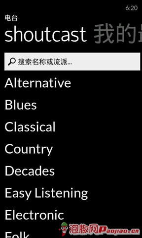 ZPlayer有一个非常酷的功能就是支持国外的音乐电台,在主菜单中有一个电台功能,进去能够找到种类非常齐全的在线音乐电台,蓝调、古典、电子、R&B等等应有尽有,每个种类都提供了多个频道选择,音乐爱好者们绝对不能错过。