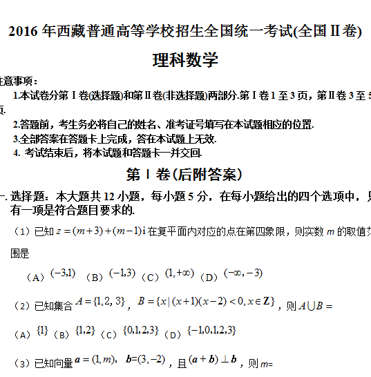 2016年西藏高考理科数学试题及答案(全国II卷) word无水印完整版 高考数学已经考完了,各位学子们不知对自己的答卷是否满意,想估算一下自己大约考得怎么样吗?小编为各位西藏地区的考生带来了2016年西藏高考理科数学试题及答案(全国II卷),真题和答案都是高清无水印的,希望大家都评论: 0条 大小: 478KB 更新时间: 2016-06-07