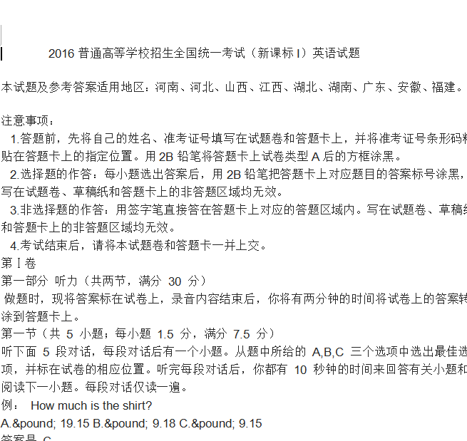 2016年安徽省高考英语试题及答案(全国I卷) doc 格式完整免费版 英语想要考出理想的成绩,除了平时的单词积累,多看多做课外辅导书,也没什么其他方法!小编为即将高考的学子带来了2016年安徽省高考英语试卷及答案(A卷+B卷),想考出出色的成绩的同学可以下载做一下!对考试肯定是有评论: 0条 大小: 27KB 更新时间: 2016-06-06