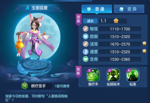 玉面狐狸:适合新手使用的单体奶妈之一,而且还能持续回奶,虽然她既不能复活也不能加buff,但是狐狸的奶量还是很足的~