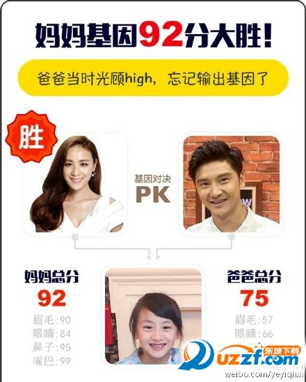 看到最新的微博里面的叶一茜上传的全家基因对决手机测试照片了吧,好多人都在问是什么软件,这里小编就给大家这个测试的软件吧,看看你家的基因匹配度为多少。