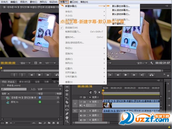 在菜单栏中有个字幕-点击新建字幕-选择字幕