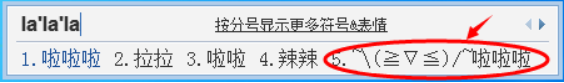 3)想要其他特殊符号,也可以先打一个啦啦啦,然后在拼音上面会有一个“按分号显示更多符号&表情”,点击就能看到很多特殊符号和表情。