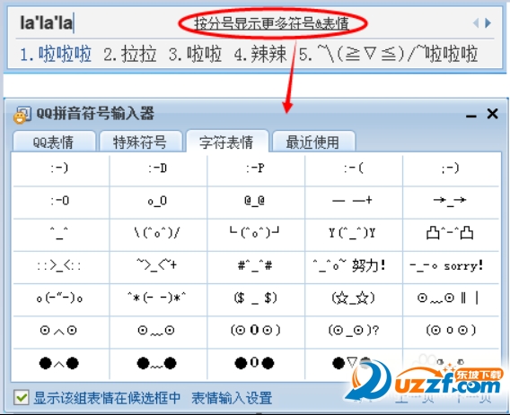 4)QQ拼音输入法,还有特殊符号输入法,即输入“vzf”即可打开常用的特殊符号。