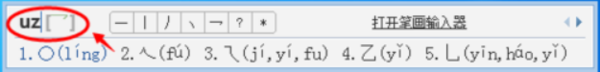 7)如果不知道那些特殊符号的拼音,可以直接打“uz”,可以打出很多特殊符号了,并且后面还会跟着有这个符号的拼音。