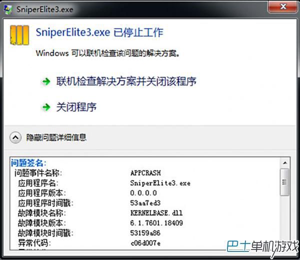 很多玩家表示狙击精英3在游戏解压安装后,无法打开游戏,打开后会出现如下图的狙击精英3停止工作提示。其实小编在玩这个游戏的时候也碰到过这样的问题。