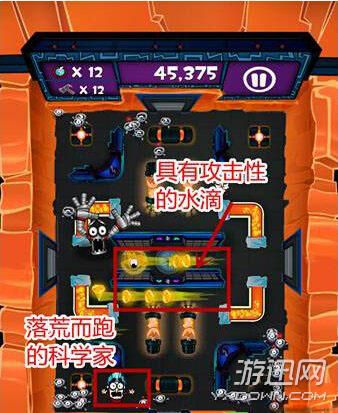 游戏中会随机的出现一些黄色的闪电,接到这个道具之后我们就能化身很多的分身,而且在这个时候是无敌的,也就是说我们可以去吃掉科学家了,吃掉一个就加1000分哦。