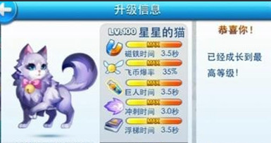 最高等级:星星的猫的满级为100级(60级后每次升级需要20个钻石)