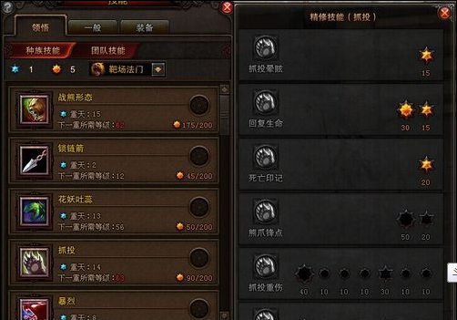 战熊姿态的开启攻势,我分别点了一点、二点、三点,感觉去输出的时候都很不爽,老是移位,全部开启后地面出现火焰,我以为和类似移动系的射天砸下来的火焰那样伤害可观,可是经过反复测试,真的没什么用处,看了别人的参考说开始点2点就好,可是,点了之后也很鸡肋,效果不明显,操作不顺手,果断放弃了,现在这样点个人感觉很不错。