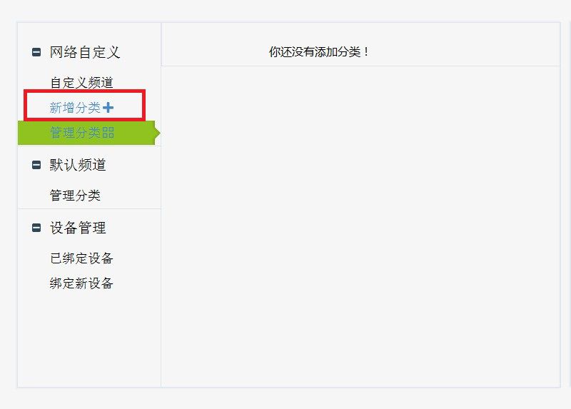 ① 点击“网络自定义”选择“新增频道分类”,输入频道分类的名称,如:港澳台,可新建一个港澳台分类。