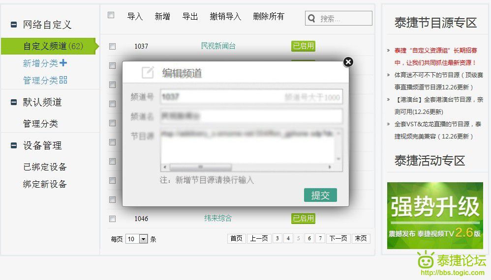 点击频道名进入频道编辑界面。频道号可以修改(频道号必须为1000号以上),调整为自己想要的顺序,调整频道的频道名称也可以修改,频道地址也可以按提示修改。