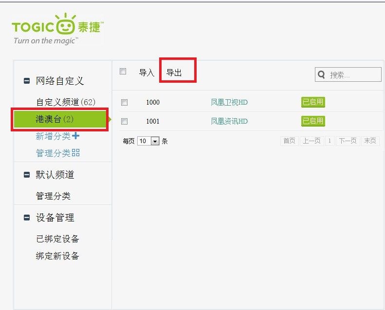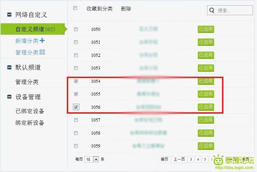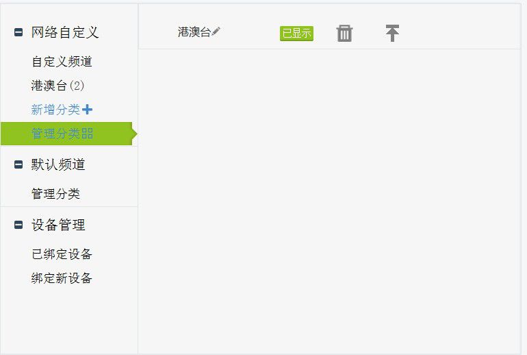 5、默认频道管理,可以隐藏或者显示已有频道分类