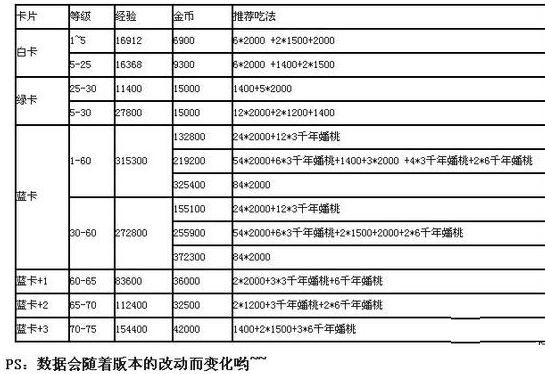 卡片升级吞噬六千年蟠桃和三千年升级最快。这些卡片可以在蟠桃园中刷出或者抽奖得到。大家一定要合理安排体力,卡片升级还可以吃其他卡片,在卡片50级以前最好不要吃桃子,先吃其他卡片,等50级甚至以后再吃桃子。因为50级以后吃卡片升级要费好多的金币。(到多少级吃桃子,可以根据自己的金币数量和桃子数量定)