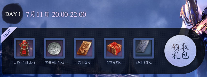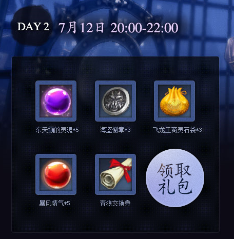 整点在线拿好礼活动时间7月11-7月13日 每天20:00-22:00