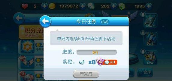 就是让角色一直使用背包飞行500以上 500米之内脚都没有落地 如果落地就是角色再跑。
