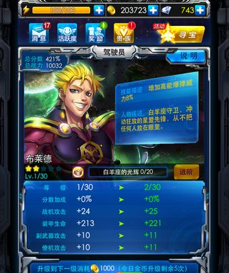 驾驶员可以使用金币或者钻石来升级,每天仅有5次机会使用金币,使用钻石没有次数限制哦!