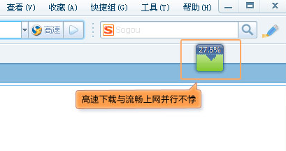 智能性:网速保护功能会智能调节分配您的网速,在生效时,下载工具或网络视频软件的上传下载速度会经过短暂的下降以满足打开网页需要的网速; 当您的网页全部加载完毕后,搜狗高速浏览器会自动为您恢复下载工具或网络视频软件的速度,真正做到了高速下载与流畅上网并行不悖。