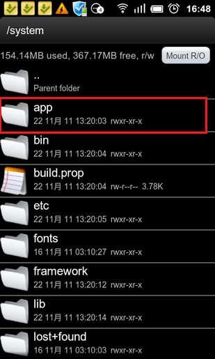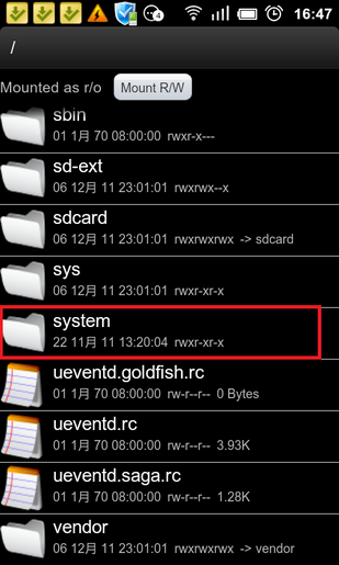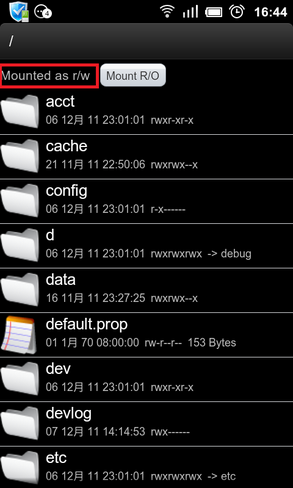 2、进入RE文件浏览器,确保左上角是Mounted as r/w,可以通过傍边的按钮切换