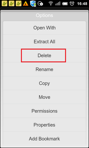 5、进入后,找到您想要删除的软件,长按后缀为.apk的文件,弹框如下,点击delete进行删除