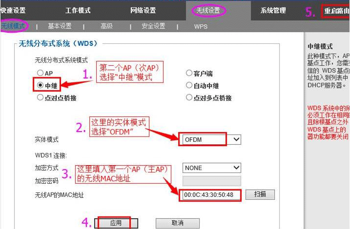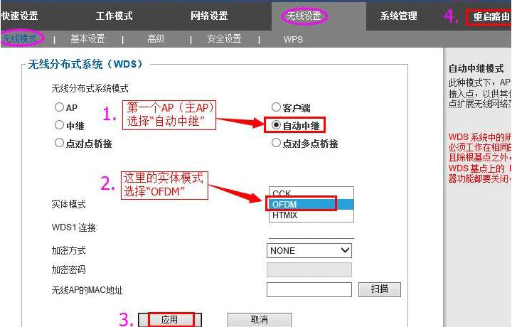 [wds中继]与[wds桥接]的区别是wds中继后,广播ssid(能搜索到信号),wds桥接后,不能广播ssid(搜索不到信号),wds仅适用于同品牌,同类型的设备之间进行连接,若在不同品牌之间的,请使用[ap客户端]