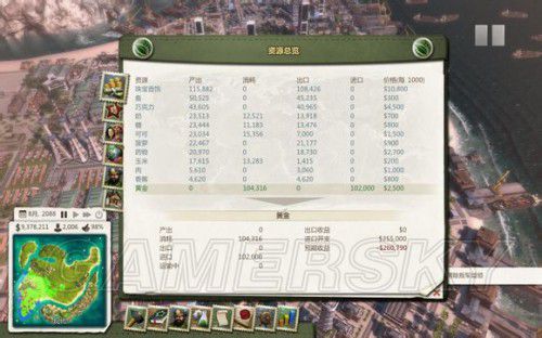 这盘能造21个船运流畅的码头,其中有39条船在进口黄金。我造了17个珠宝工房,略微多造了1个2个,问题不大。