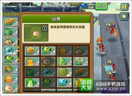 植物的选择:双胞向日葵、卷心菜投手、土豆雷、冰冻生菜、双重射手、火龙草、坚果、仙桃(或者三叶草)