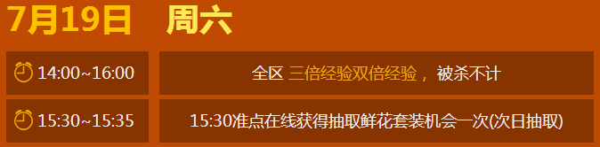 全区 三倍经验双倍经验, 被杀不计,15:30准点在线获得抽取鲜花套装机会一次(次日抽取)