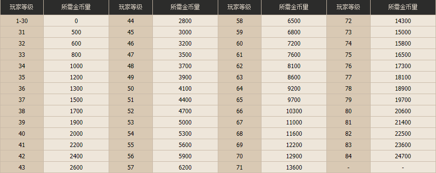 消耗金币列表