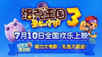 小朋友们都期待的洛克王国3·圣龙的守护终于在7月10号在全国欢乐上映了。天天爱消除游戏也助力大电影洛克王国3·圣龙的守护,推出超值礼包,金币3888,鲨鱼导弹,爱心送给你,小伙伴们,赶快来参加活动吧!