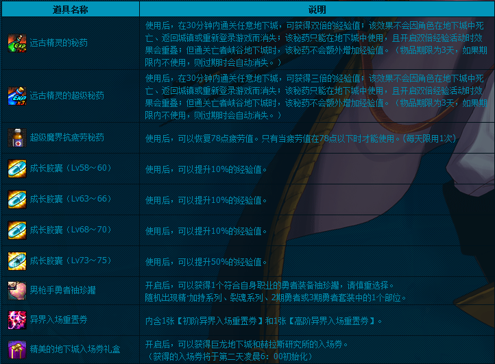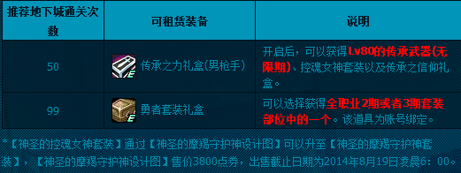 3、通关地下城送好礼活动发放的所有奖励将于2014年9月2日凌晨6:00统一删除,请及时使用;