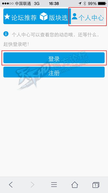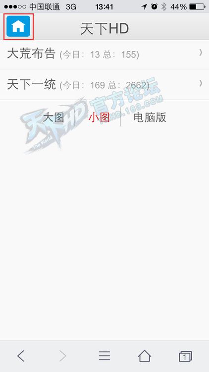 打开论坛后,我们的位置在《天下HD》版块,我们需要登录帐号才可以上传图片,我们先点击图中的“小房子”来到论坛主页