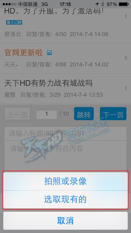 我们可以拍照,也可以从手机中选取,当然啦游戏截图是事先截取好的,那我们就“选取现有的”。