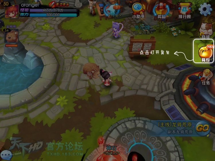 首先我们在城镇中的主界面右侧找到“背包”按钮,点击打开背包。