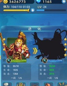 当玩家将卡牌升级到一定程度的时候,就会出现满级的情况(白卡:15级、绿卡:30级、蓝卡:60级、蓝卡+1:65级、蓝卡+2:70级、蓝卡MAX:75级以此类推到紫卡+2:85级)这时候英雄就需要进化,才能提升等级。需要知道的是进化后等级是不会变,进化也需要收集相应的材料才可以进化。