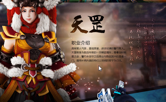 《古剑奇谭二》女主角闻人羽就出身于百草谷的“天罡”部队。“天罡”在单机中的设定是一支驻守在百草谷,保护并协助墨者的军事化武装力量。作为“天罡”部队中的女战士闻人羽在游戏中是手持长枪的物理近战职业。在网络版中“天罡”估计属于坦克或近战物理输出型。不知道闻人羽的必杀技“气吞万里如虎”会不会沿用到网络版中呢?