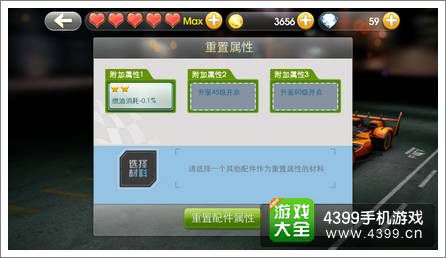 如何合理的配件是有学问的,因为配件下面的属性加成是不同的。关于玩家是想刷金币还是想更高的积分,在这里选择配件上面一定要注意,好的属性能给你意想不到的收获。
