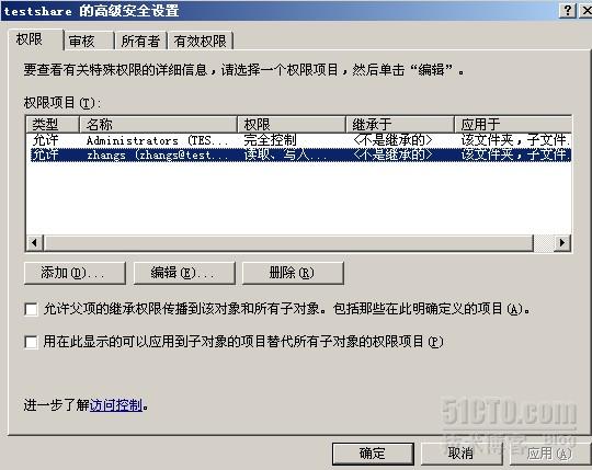 请问错在哪里,若共享权限设为读取,NTFS权限设为完全控制,zhangs对文件夹却有读取的权限???