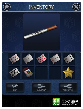 4、将烟盒分解,得到烟盒和一根烟。烟上有一组数字73946,这就是大门的密码!