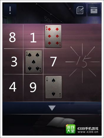 3、在房间里收集六张扑克和一个烟盒,分别入下图所示的地址。六张扑克分别为♦3,♥8,♣9,♠4,♣A,♥7;