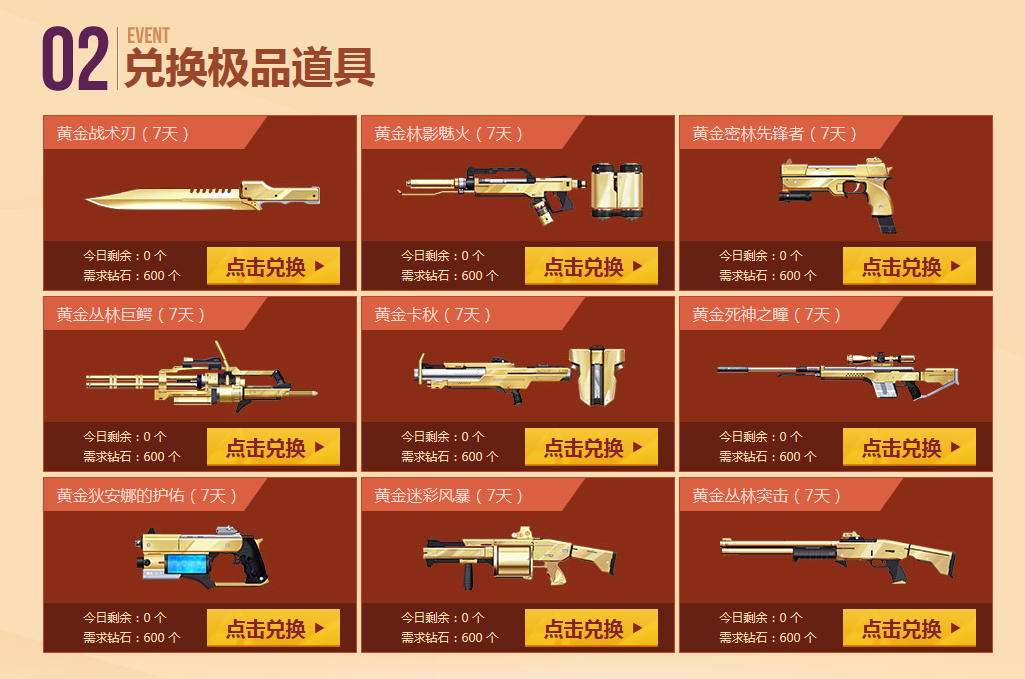 2、活动期间,玩家可以使用一定数量的枪神之钻来兑换奖励,每种奖励每个QQ号最多只能兑换5次;非卖品每日限量兑换,每个限量道具每人每天只能兑换1次;