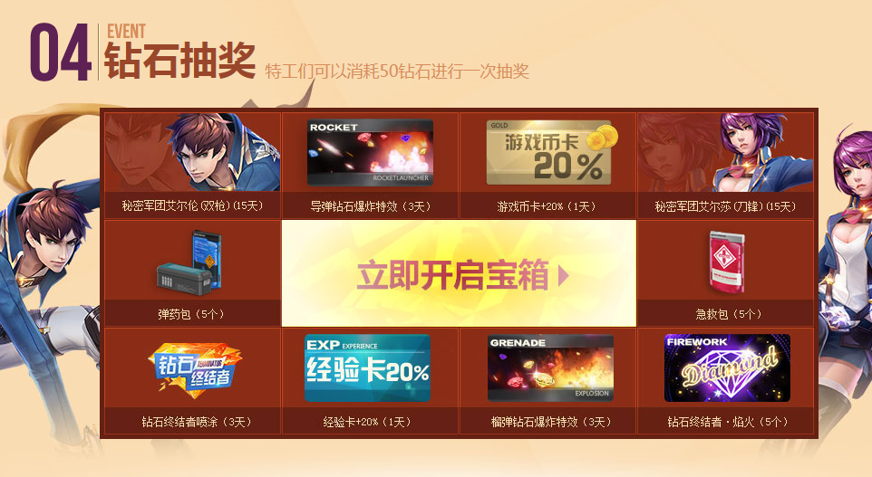 3、特工们可以通过少量钻石进行抽奖,有机会获限量新角色!